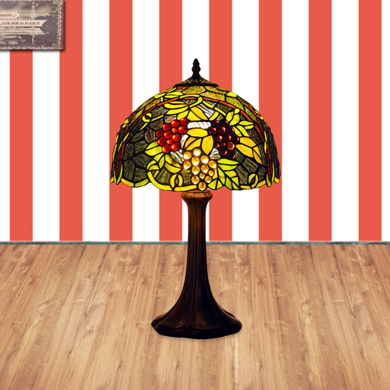 Green Stained Glass Grapevine Night Light: Table Lamp With Tiffany-Inspired Bronze Finish