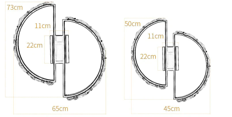 Diamètre : 50 cm x 11 cm x 23 cm, 73 cm x 11 cm x 22 cm