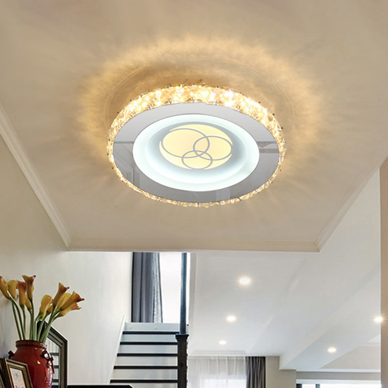 Stylish Mini Led Ceiling Flush Mount Crystal Light Fixture For Corridor Stainless-Steel / C