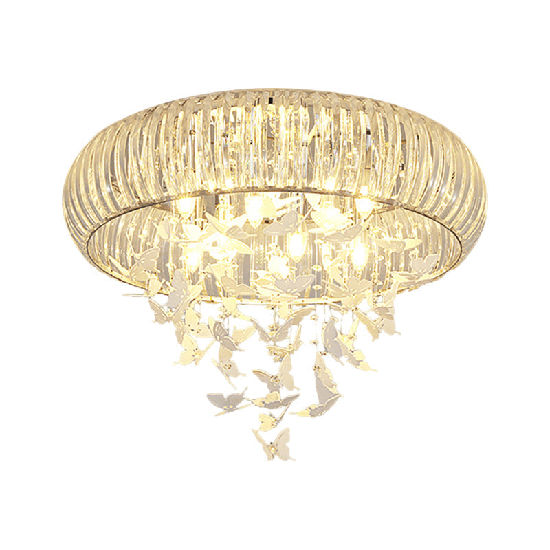 Modern Led Butterfly Flush Mount Ceiling Lamp - Crystal Prism Ring Remote Control Dimming &