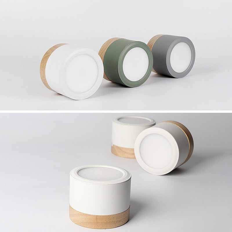 Nordic Style Led Metal Cylinder Flush Mount Ceiling Light Green / Natural