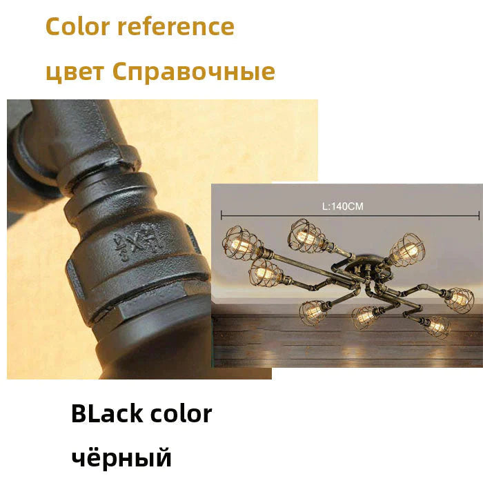 Earl - American Retro Water Pipe Chandelier 6 Head Black