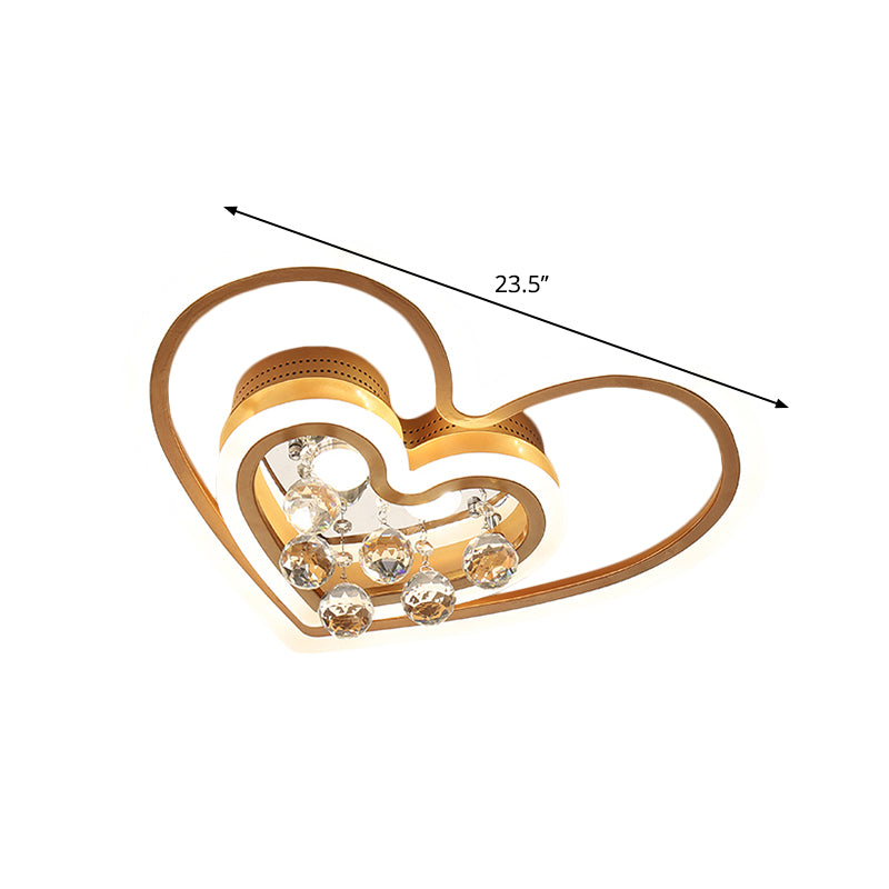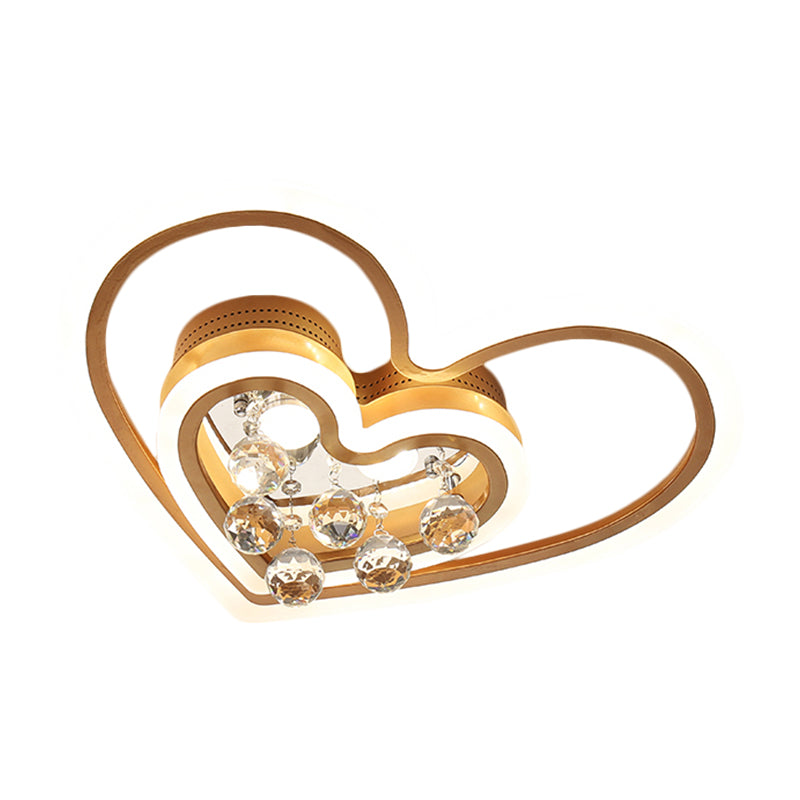 Modern Led Gold Flush Mount Lamp With Crystal Shade - Triangle/Round/Loving Heart Design / Loving