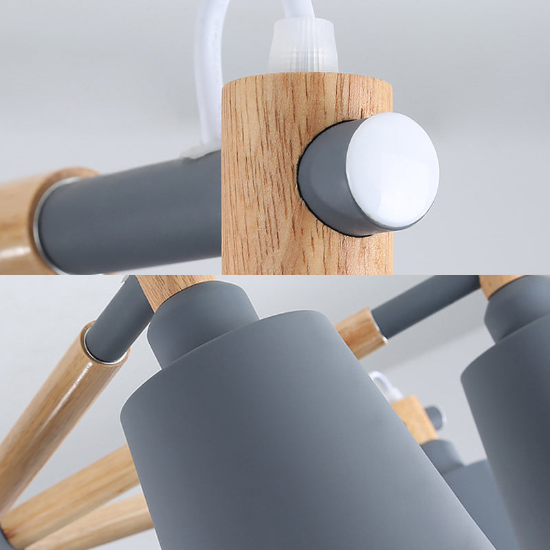 Il s'agit d'une lampe suspendue Macaron avec abat-jour conique en métal. Il est idéal pour les salons d'une taille de 25 pouces et plus. La largeur du luminaire est de 31", la hauteur du luminaire est de 19" et la longueur de la chaîne/cordon est de 12". La lumière est LED/Incandescent/Fluorescent avec une tension de 110V-120V 220V-240V. La base de l'ampoule est E26/E27. Il n'y a pas d'ampoule incluse. La couleur de la lumière est bleu gris vert rose jaune. Le nombre de lumières est de 6. Le style est enfant. Le matériau est en métal. Le nombre de niveaux est de 1 niveau. La direction de l'abat-jour est vers le bas. La couleur de l'abat-jour est bleu gris vert rose jaune.