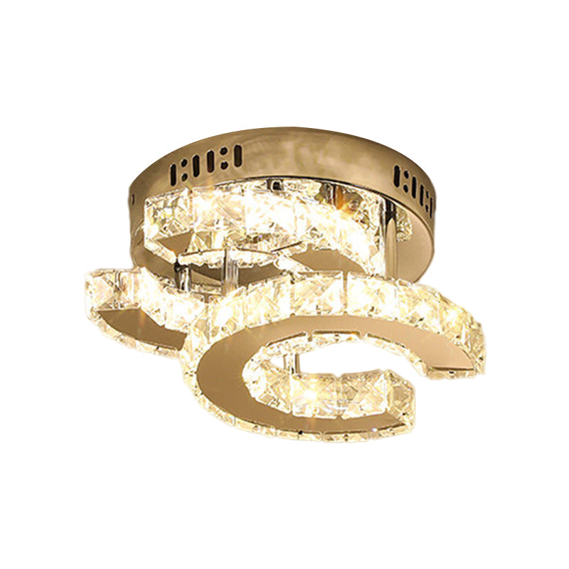 Luminaire semi-luminaire LED moderne pour couloir en acier inoxydable avec blocs de cristal transparents - Montage au plafond
