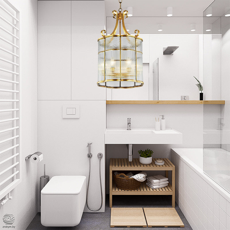 Colonial Gold Clear Prismatic Glass Chandelier - 22/23 H Cylinder Pendant Lamp 4 Bulbs Ideal For