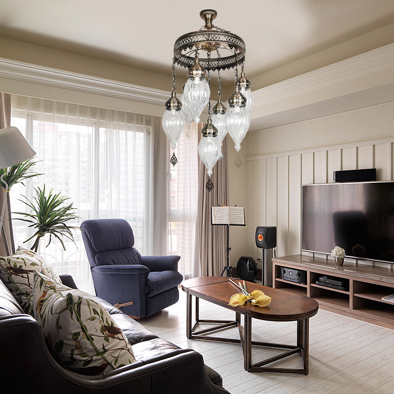 Bohemia 7-Light Crackle Glass Chandelier: Clear Ceiling Pendant For Living Room With Circular Design