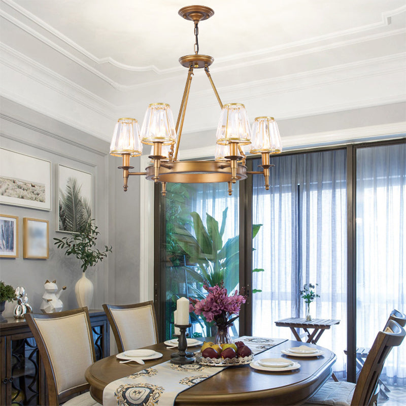 Crystal Hanging Lamp Kit With Conic Metal Ring Design For Living Room Chandelier Lighting 6 / Brass
