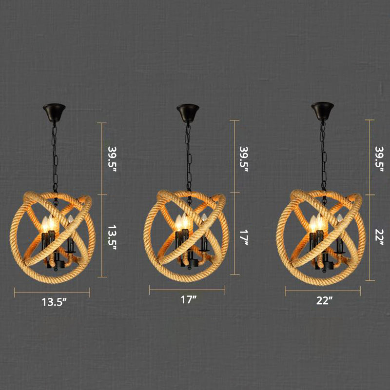 Hemp Rope Yellow Chandelier Light - Farmhouse Pendant Lighting Fixture (3-Light 14/16.5/20.5 Wide)