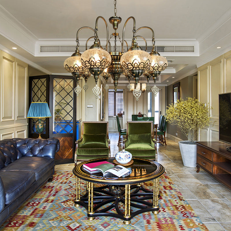 Bohemia Lampe à Suspension Lanterne en Verre Craquelé Clair - Lustre en Bronze à 8 Lumières