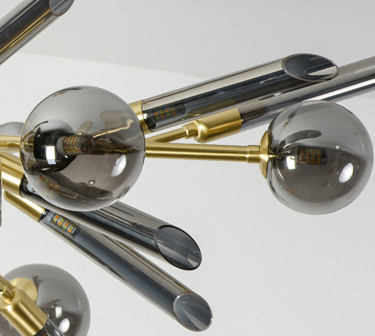 Post-Modern Metal Starburst Chandelier With Glass Shade For Living Room Ceiling 32 / Smoke Gray