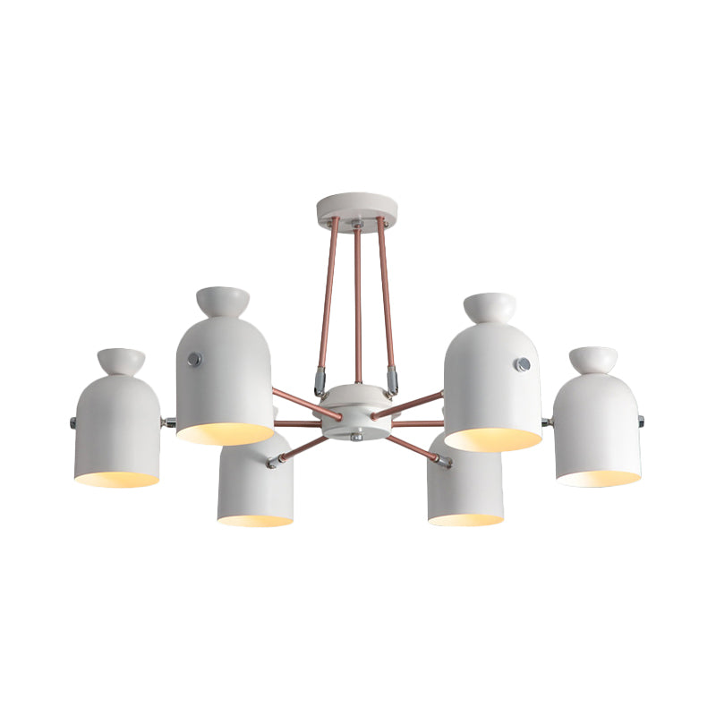 Rotatable Metal Cup Chandelier - 6 Light Macaron Style Hanging For Childs Bedroom White