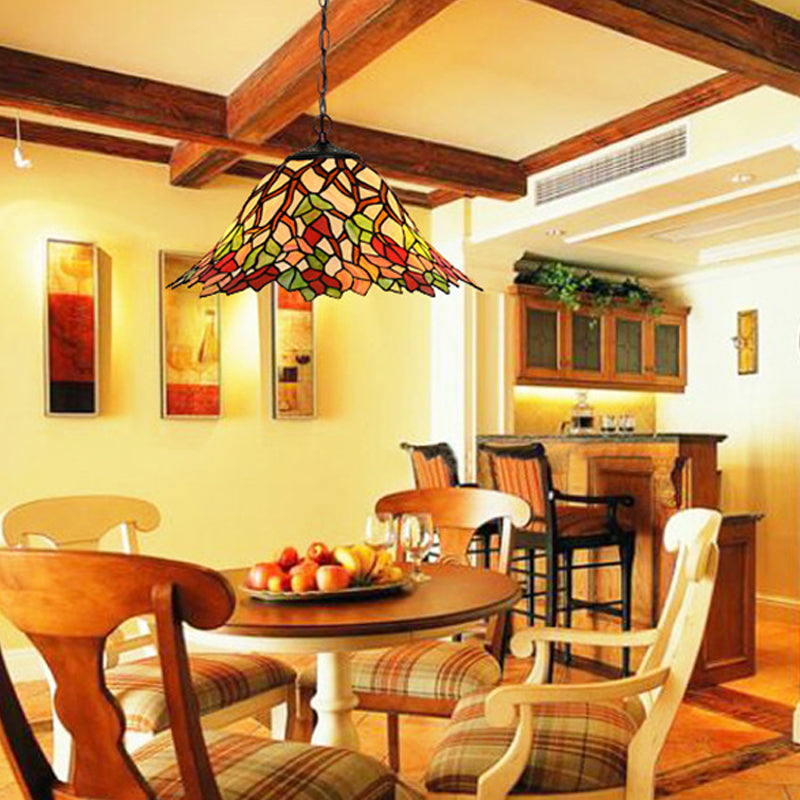Caractéristique : abat-jour en vitrail multicolore, pointé vers le bas, un niveau.