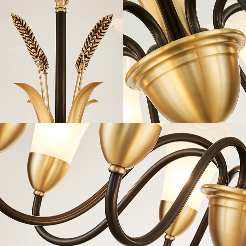 Floral Shaped White Glass Chandelier - Traditional 6/8/12 Lights Study Room Ceiling Light In Brass 6