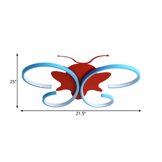Butterfly Aluminum Led Flush Pendant Light For Kids Blue/Red Ceiling With Warm/White Glow