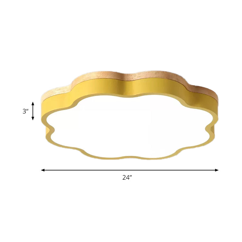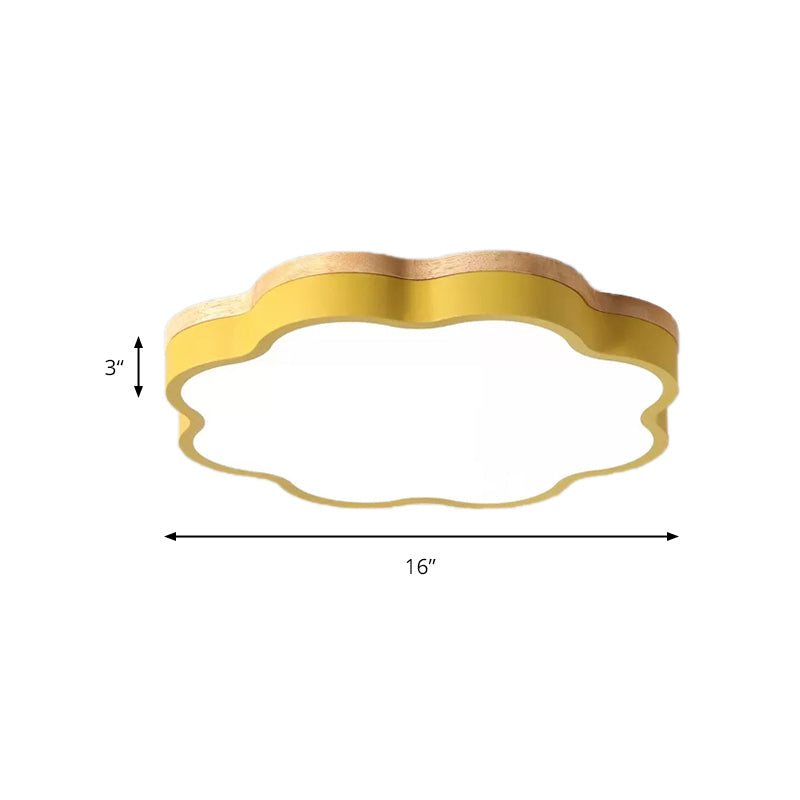 Kids Bedroom Wood Led Flush Mount Ceiling Light With Floral Shade Yellow / 16 Natural