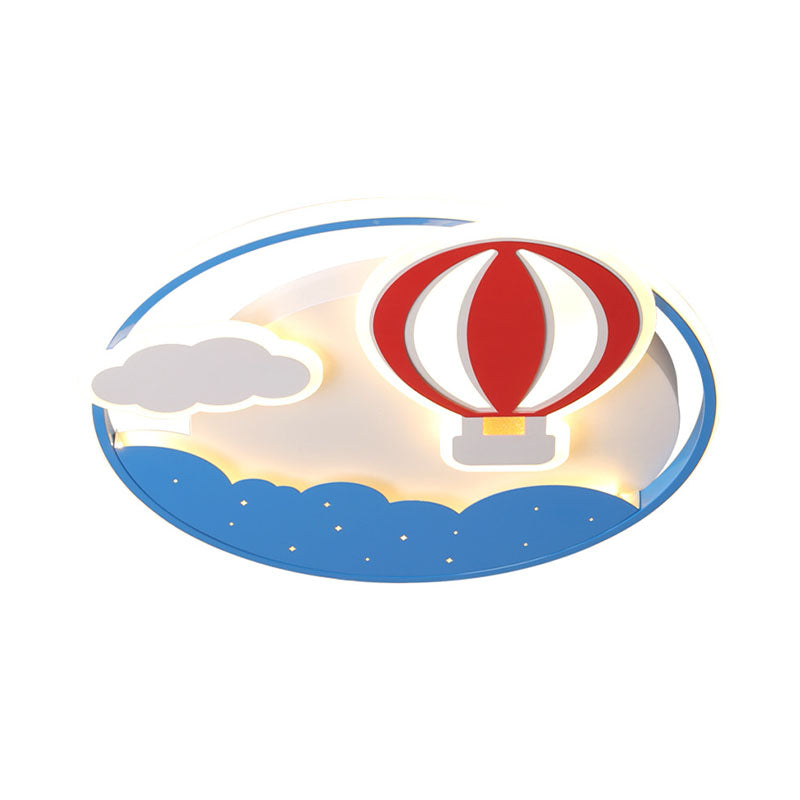 Blue Hot Air Balloon Led Flushmount Ceiling Light Fixture For Kids Nursery - 16/19.5 Wide