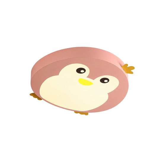 Cartoon Penguin Led Ceiling Light Fixture In Blue/Pink - Flush Mount For Kids Bedrooms Pink