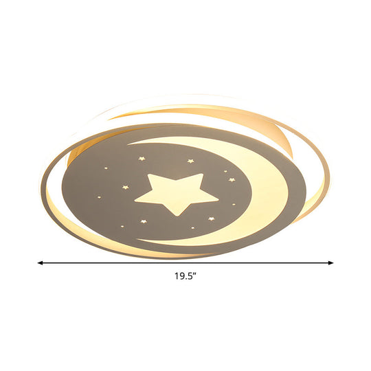 White Metal Moon&Star Ceiling Light - Creative Led Flush Mount For Kids’ Bedroom & Corridor / 16’