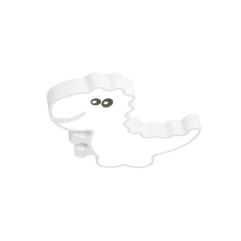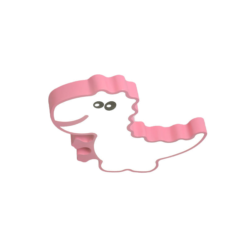 Dinosaur Flush Mount Light For Kids - Iron White/Pink/Green Led Ceiling Fixture Childrens Bedroom