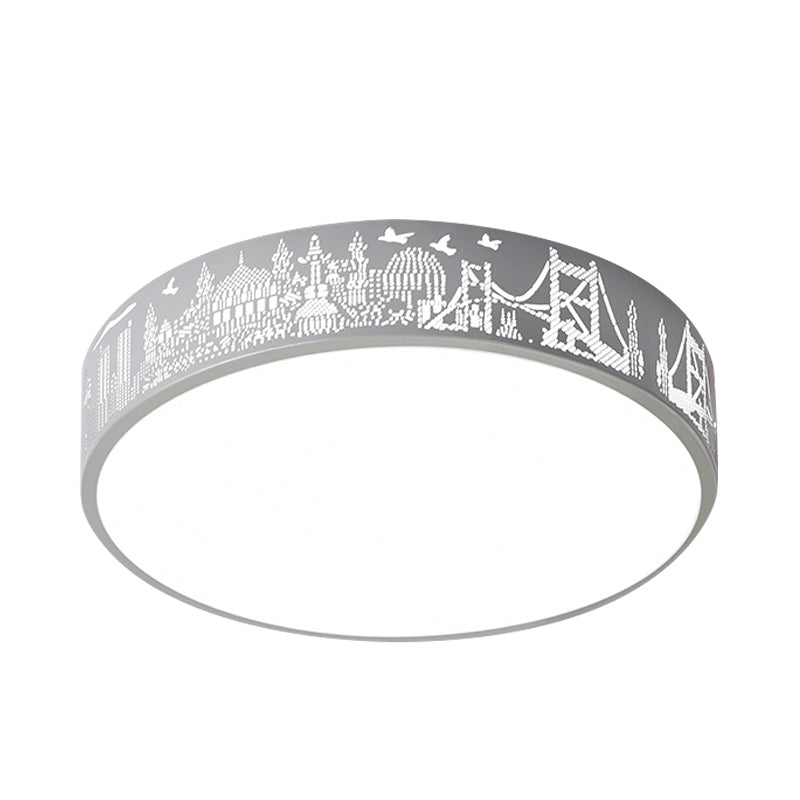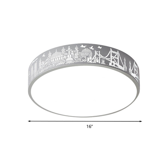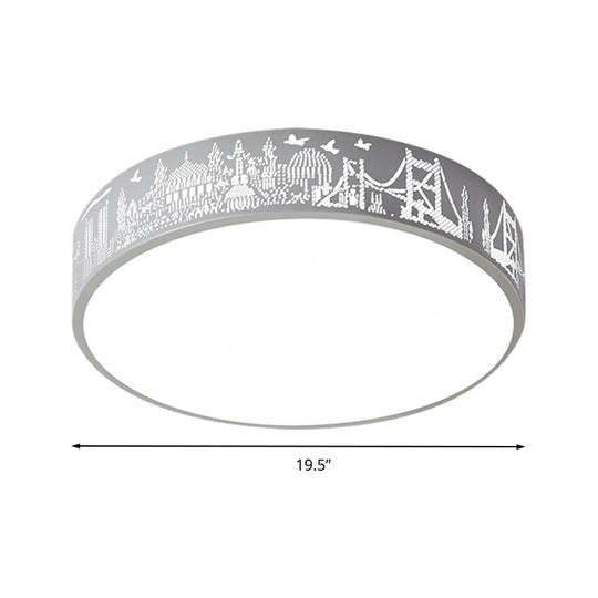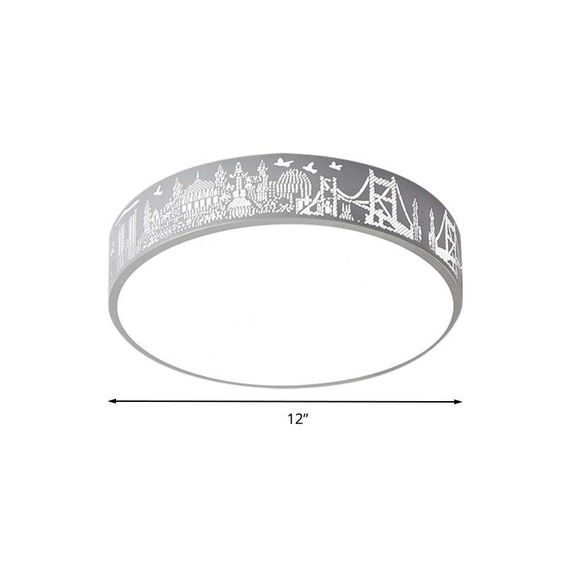Macaron Loft Kids Ceiling Light With Etched Acrylic And Metal Mount - Round Design White / 12