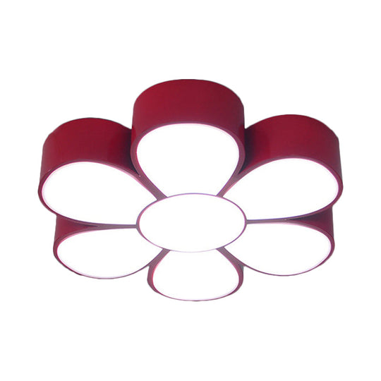 Flower-Shaped Kids Flush Ceiling Light Fixture In Vibrant Yellow/Green/Red With Acrylic Shade Red