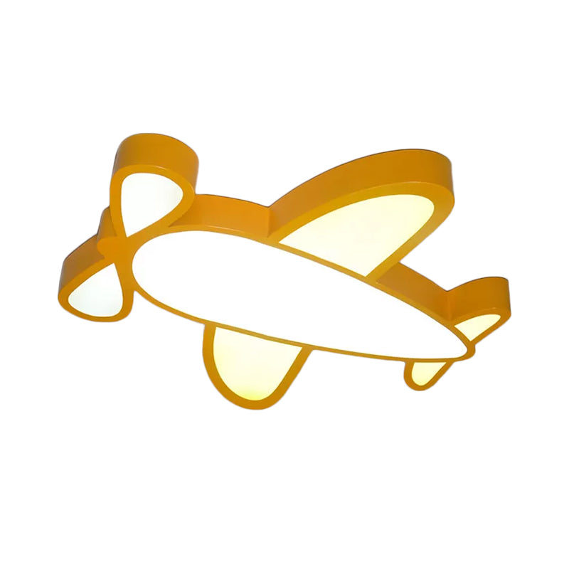 Kids Led Flush Light Fixture With Battle-Plane Design - Acrylic Shade In Red/Yellow/Blue Warm/White