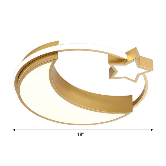 Kids Moon And Star Flush Mount Led Ceiling Light Gold/Black/White Gold