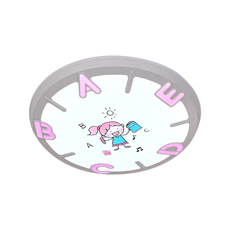 Kids Led Flush Ceiling Light With Letter Pattern In Blue/Pink - Round Shade Plastic Pendant Ideal