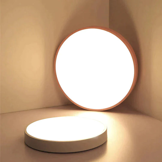 Modern Colorful Macaron Round Led Ceiling Light Kids Room Lamparas De Techo Lustre Lamp Pink /