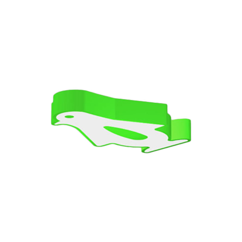 Penguin Led Flush Mount Lighting For Kids Metal Kindergarten Ceiling Lamp - Red/Pink/Yellow Green