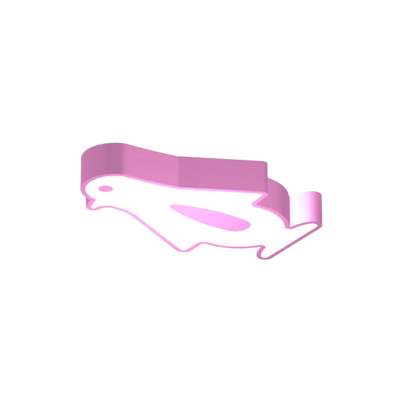 Penguin Led Flush Mount Lighting For Kids Metal Kindergarten Ceiling Lamp - Red/Pink/Yellow Pink