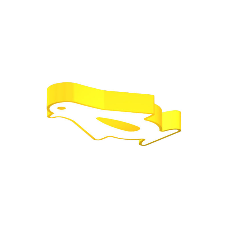 Penguin Led Flush Mount Lighting For Kids Metal Kindergarten Ceiling Lamp - Red/Pink/Yellow Yellow