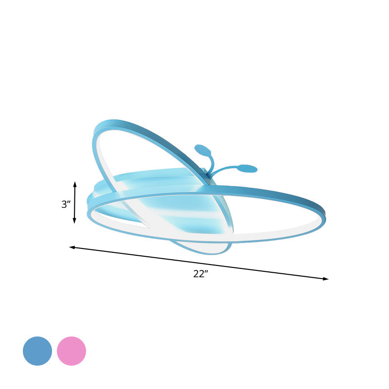 Pink/Blue Butterfly Ceiling Lamp: Kids Iron Led Flush Mount Light For Kindergarten