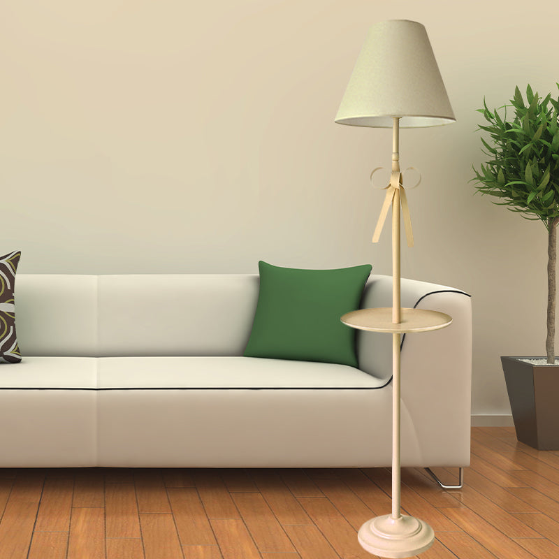 Kids Pink/Yellow Conical Standing Floor Light With Pleated Fabric Shade And Table - 1 Bulb