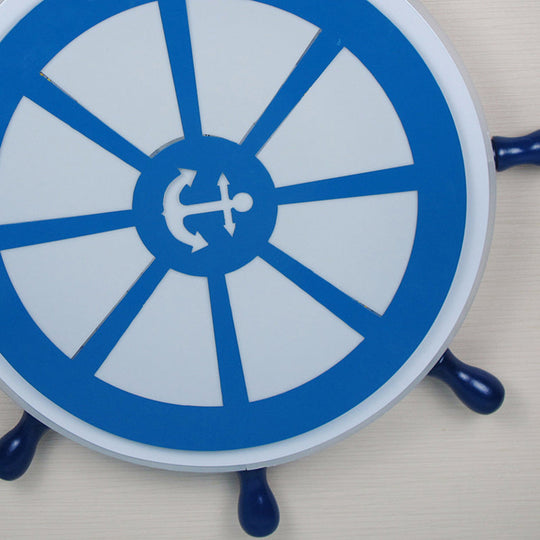 Blue Metal Flush Mount Led Ceiling Light For Boys Bedroom - Rudder Design Ideal Kids