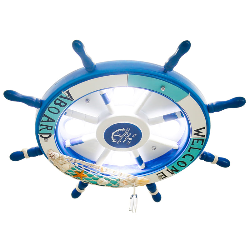 Rudder Kids Room Led Flush Mount Ceiling Light - Wooden 8 Heads Mediterranean Design Blue