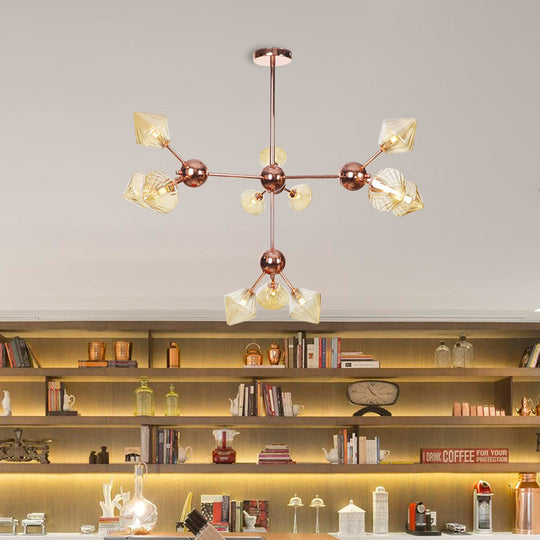 Diamond Farmhouse Chandelier Lamp - Amber/Clear Glass 3/9/12 Lights Hangs 13/27.5/34 Wide 12 / Amber