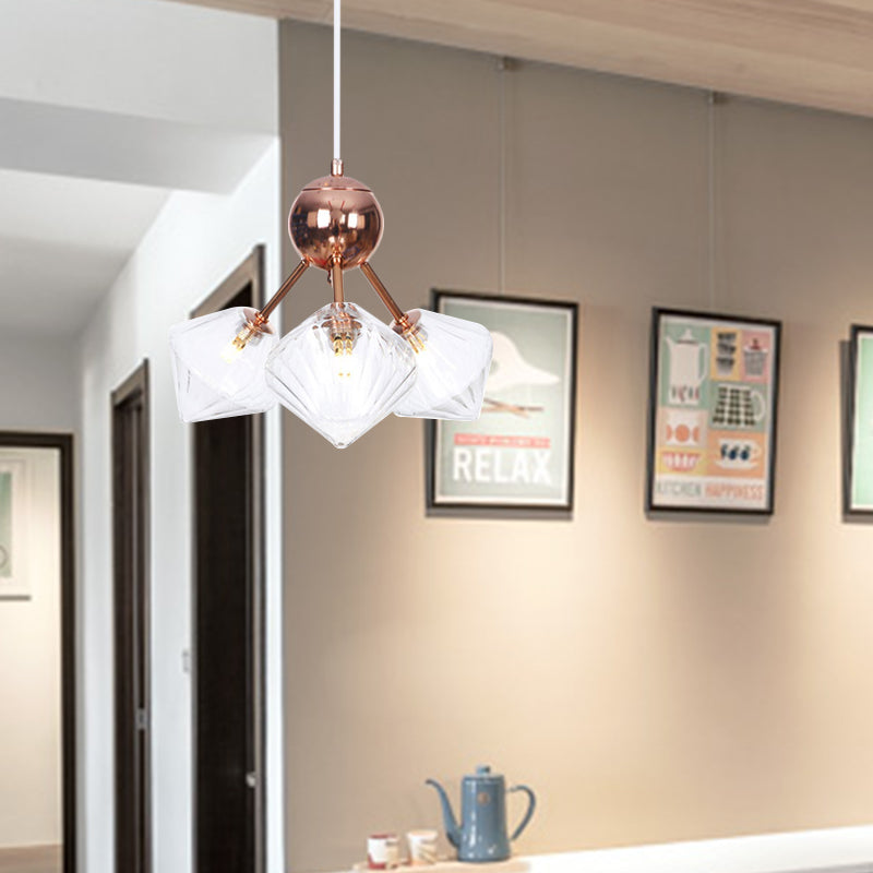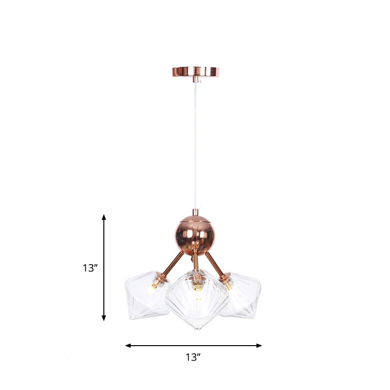 Diamond Farmhouse Chandelier Lamp - Amber/Clear Glass 3/9/12 Lights Hangs 13/27.5/34 Wide 3 / Clear