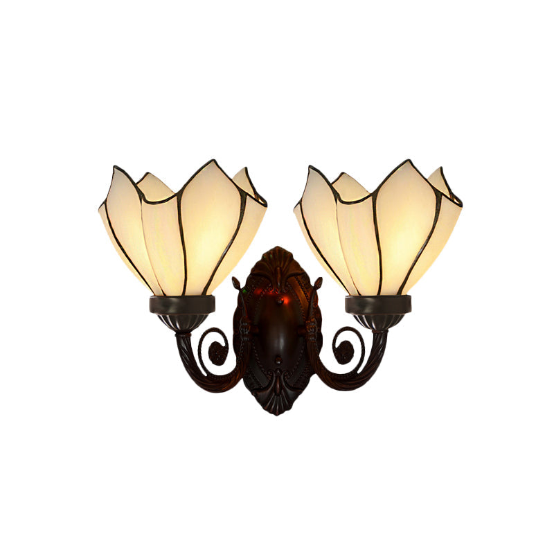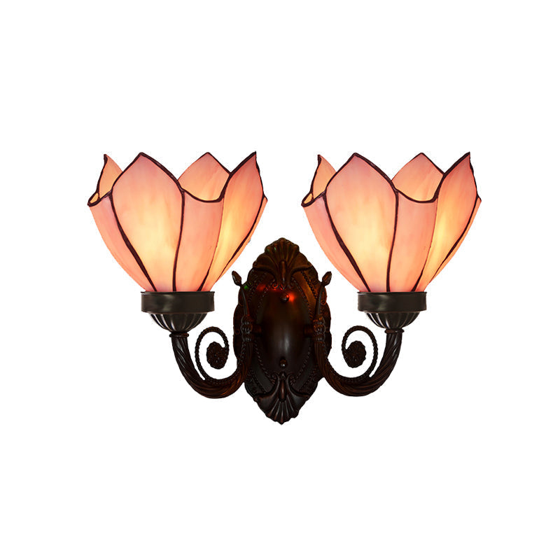 White/Pink Glass Petal Wall Sconce With Swirl Arm - 2 Lights Mediterranean Lighting Fixture For