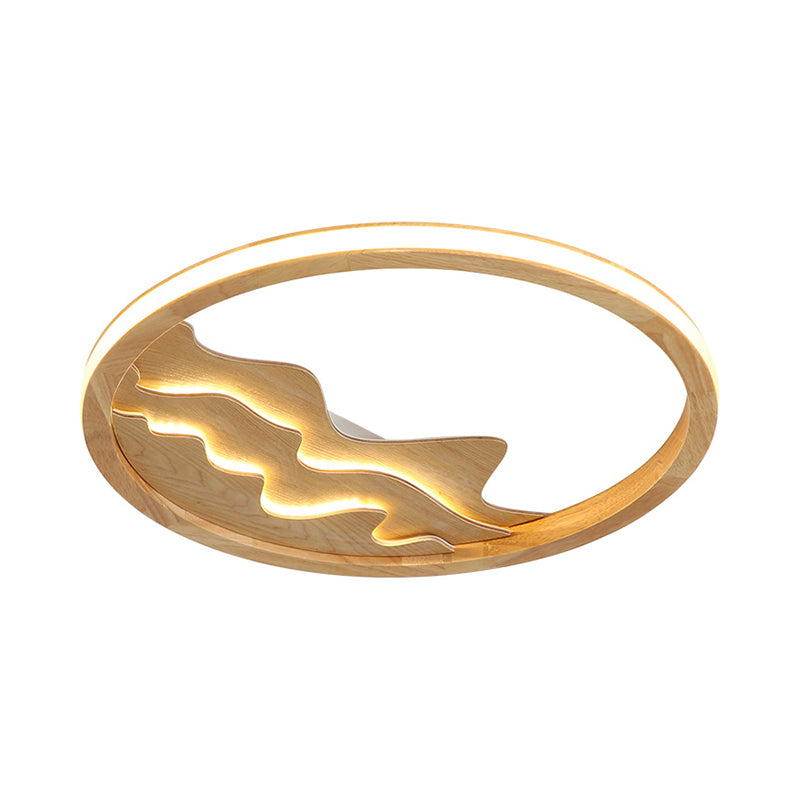 Plafonnier LED moderne en bois avec design paysager - Luminaire encastré circulaire de 13"/17" en beige