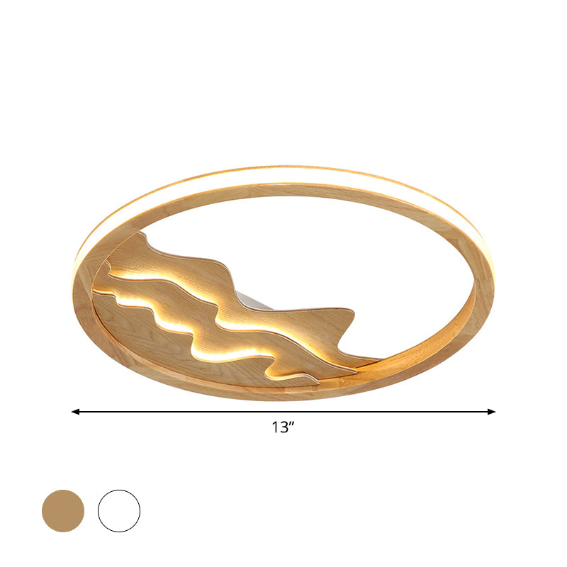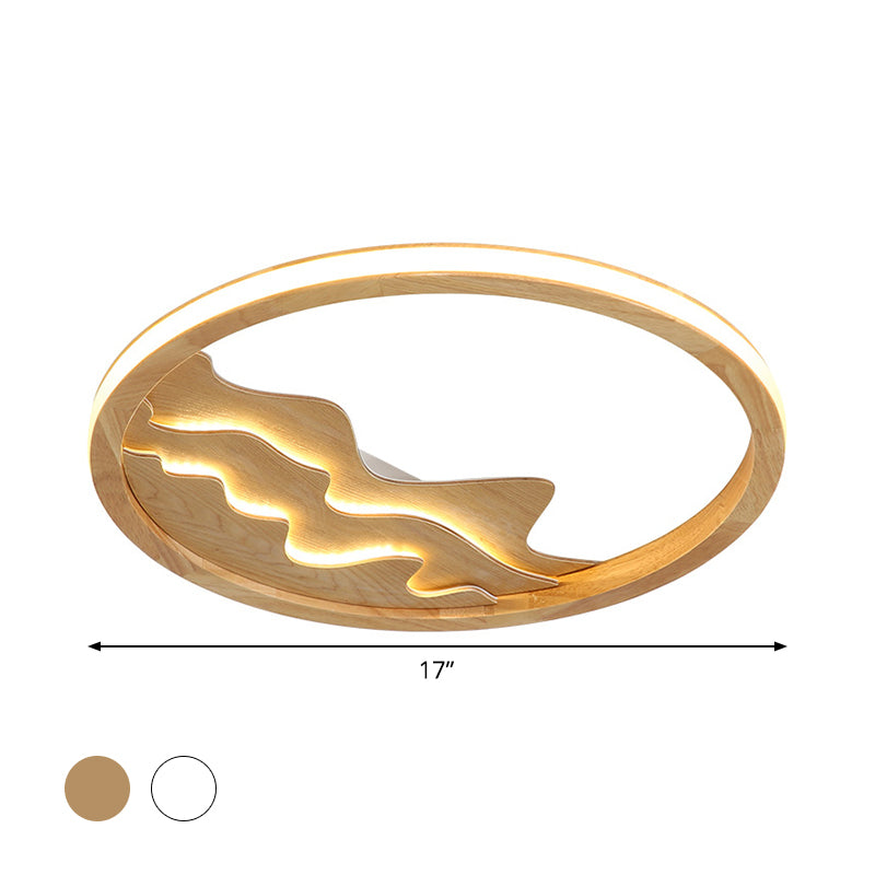 Modern Wood Led Ceiling Light With Landscape Design - 13/17 Circle Flush Mount Fixture In Beige / 13