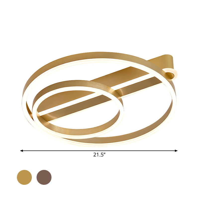 Plafonnier moderne en métal doré/café - Plafonnier à LED à 2 cerceaux de 18"/21,5" de largeur - Salon, lumière chaude/blanche