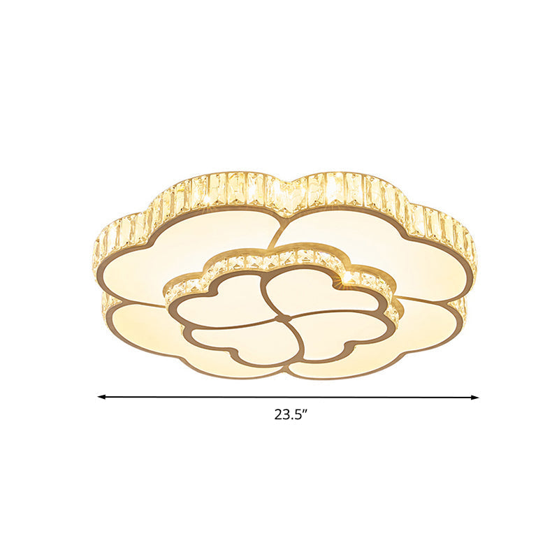 Plafonnier LED moderne en cristal à pétales en blanc - 19,5"/23,5"/31,5" - pour chambre à coucher