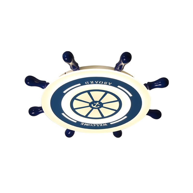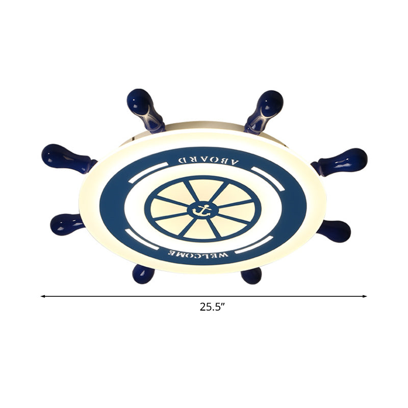 Mediterranean Blue Led Flush Ceiling Light With Rudder Acrylic Shade - 21.5/25.5 Nursery Mount /