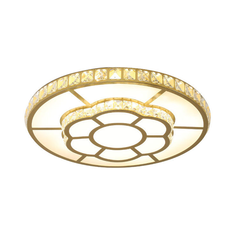 Plafonnier LED en acrylique doré minimaliste avec décoration en blocs de cristal - Lumière chaude/blanche