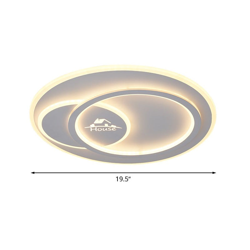 Plafonnier circulaire moderne à LED avec lumière chaude/blanche et motif de maison en acrylique