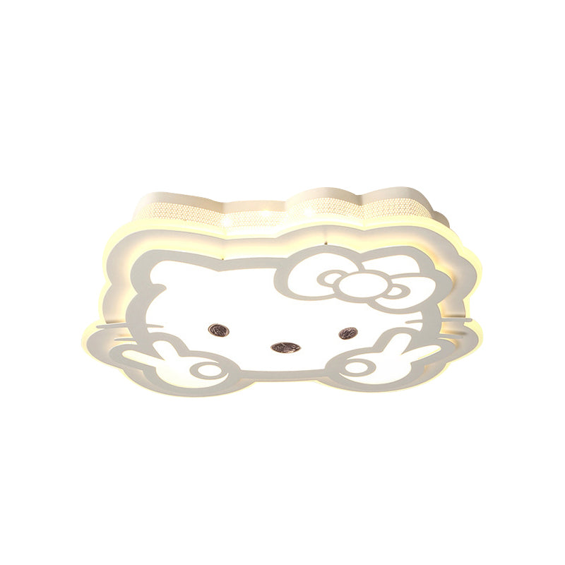 Cartoon Led Ceiling Lamp - Acrylic Peace Sign Kitty Mount Light For Baby Girls Room White / 16’ Warm