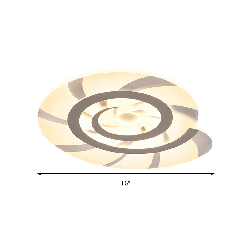 White Acrylic Snail Shell Led Ceiling Light - Perfect For Kid’s Bedroom! / 16’ Warm