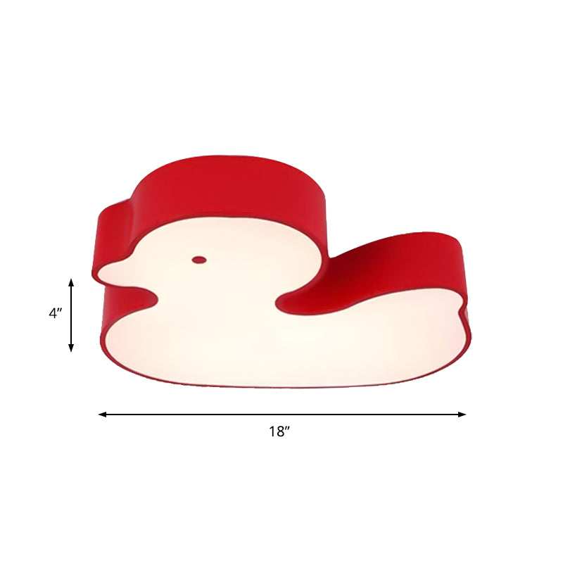 Baby Duck Led Flush Ceiling Light - Fun & Bright Metal Fixture For Childs Bedroom Red / White 18